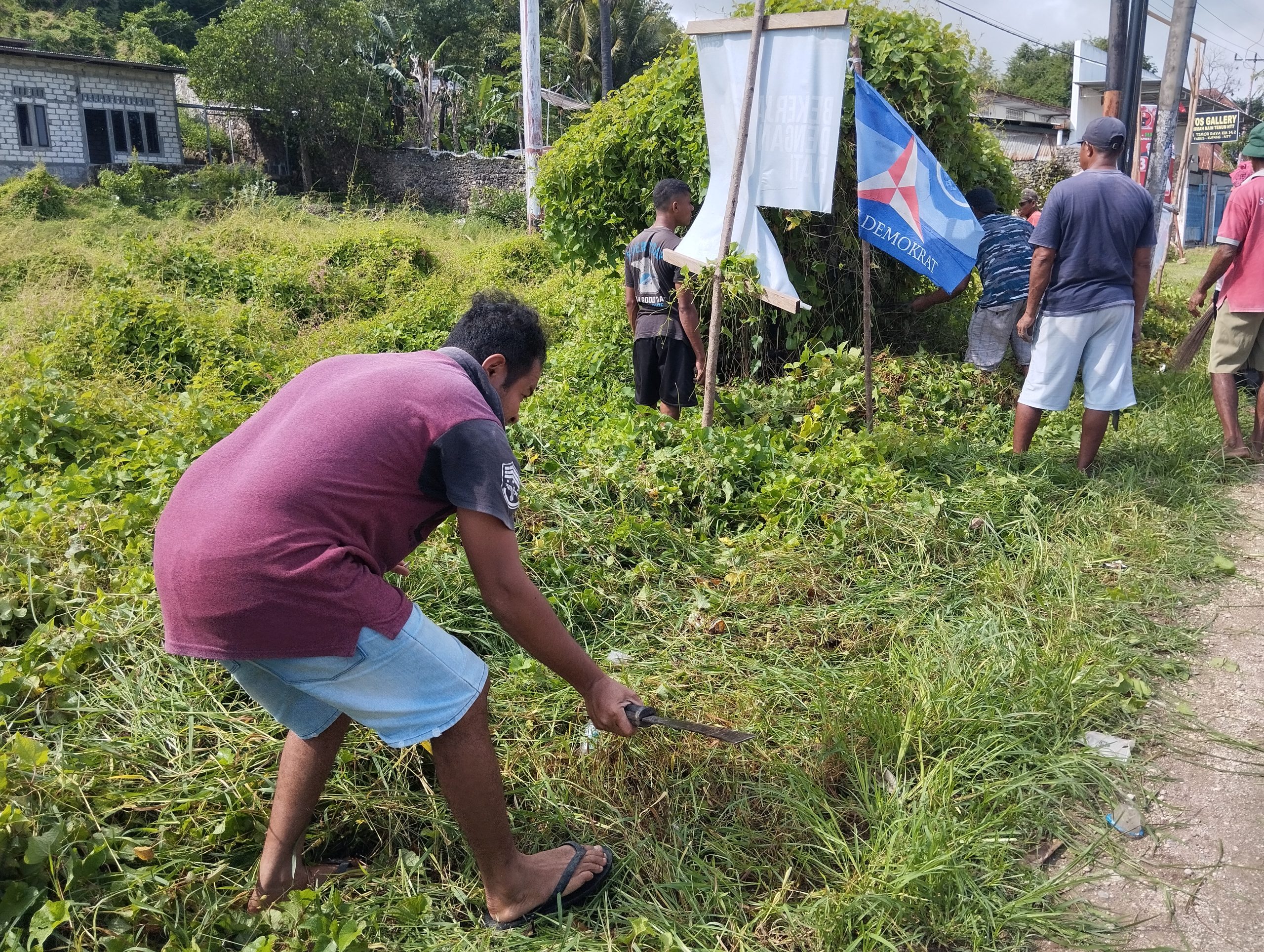 Dalam kegiatan kerja bakti ini, 13 mahasiswa Unika bersama puluhan warga membersihkan rumput di pinggiran jalan Timor raya sekaligus memungut sampah yang bertebaran di sekitaran jalan.