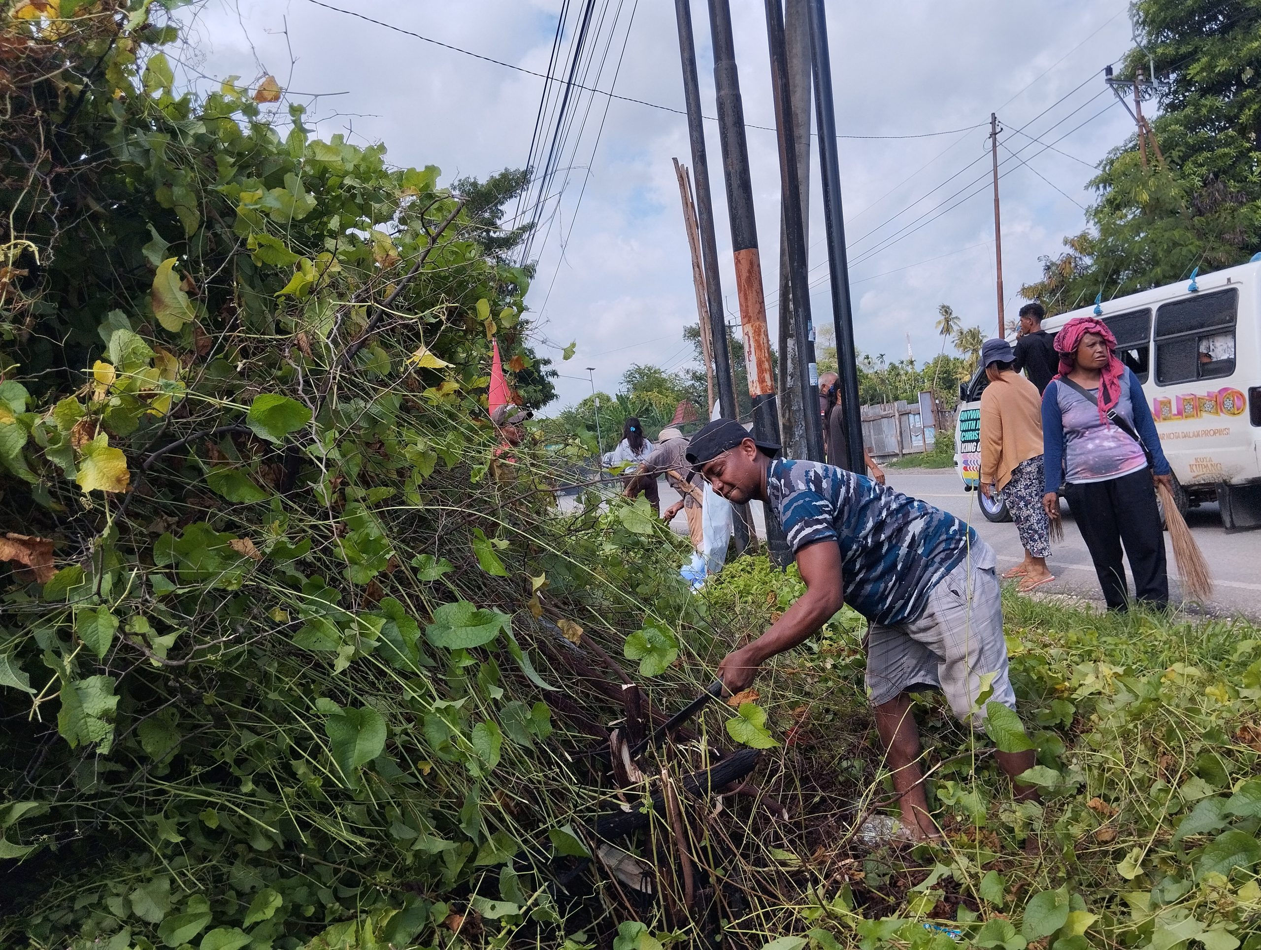 “Ini kan jalan Timor raya tentu banyak penguna kalau lihat sampah bertebaran kurang elok di pandang jadi kami lakukan pembersihan melibatkan warga sebagai contoh atau edukasi agar masyarakat ada kesadaran untuk tidak buang sampah sembarang.”ujarnya